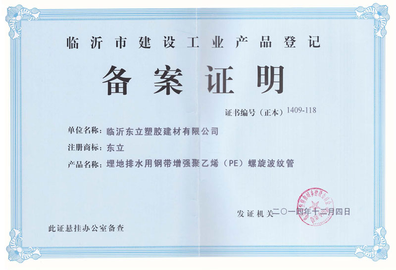 建設(shè)工業(yè)產(chǎn)品備案登記證